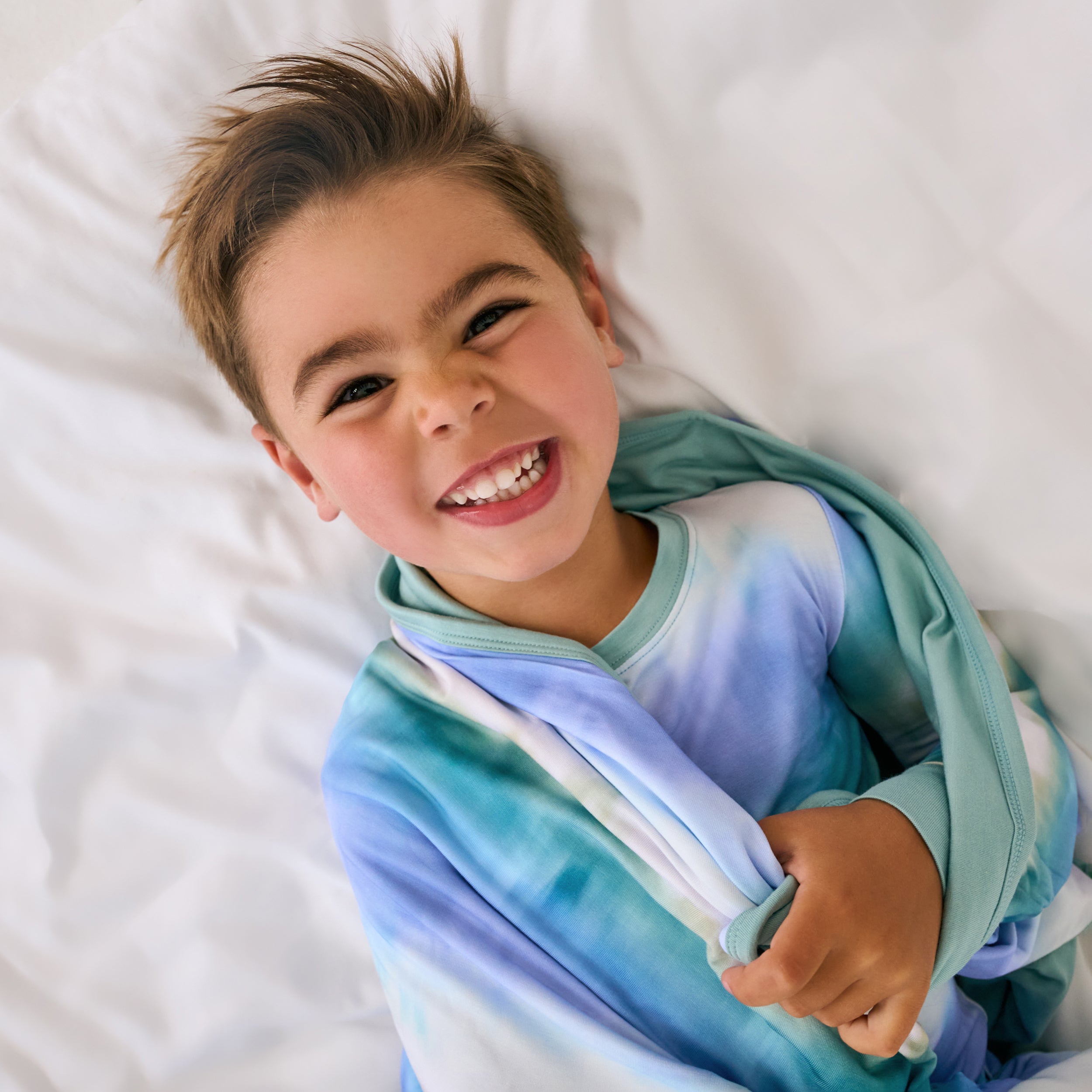Cozy cosmic vibes are here! This bamboo blanket features soothing watercolor waves in a blue ombr?? design. Made from triple layered Lunaluxe? Bamboo. its breathable fabric is gentle on sensitive skin and perfect for summer snuggles with the fam. Grab matching PJs for even more family fun!