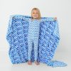 Snuggle up with the fam under this fan-fave Cloud Blanket?! Featuring an all-over blue rainbow print on a white background. with blue and white triangles on the other side. Made from three luxurious layers of our signature Lunaluxe? Bamboo. it’s as buttery soft as your matching jams!