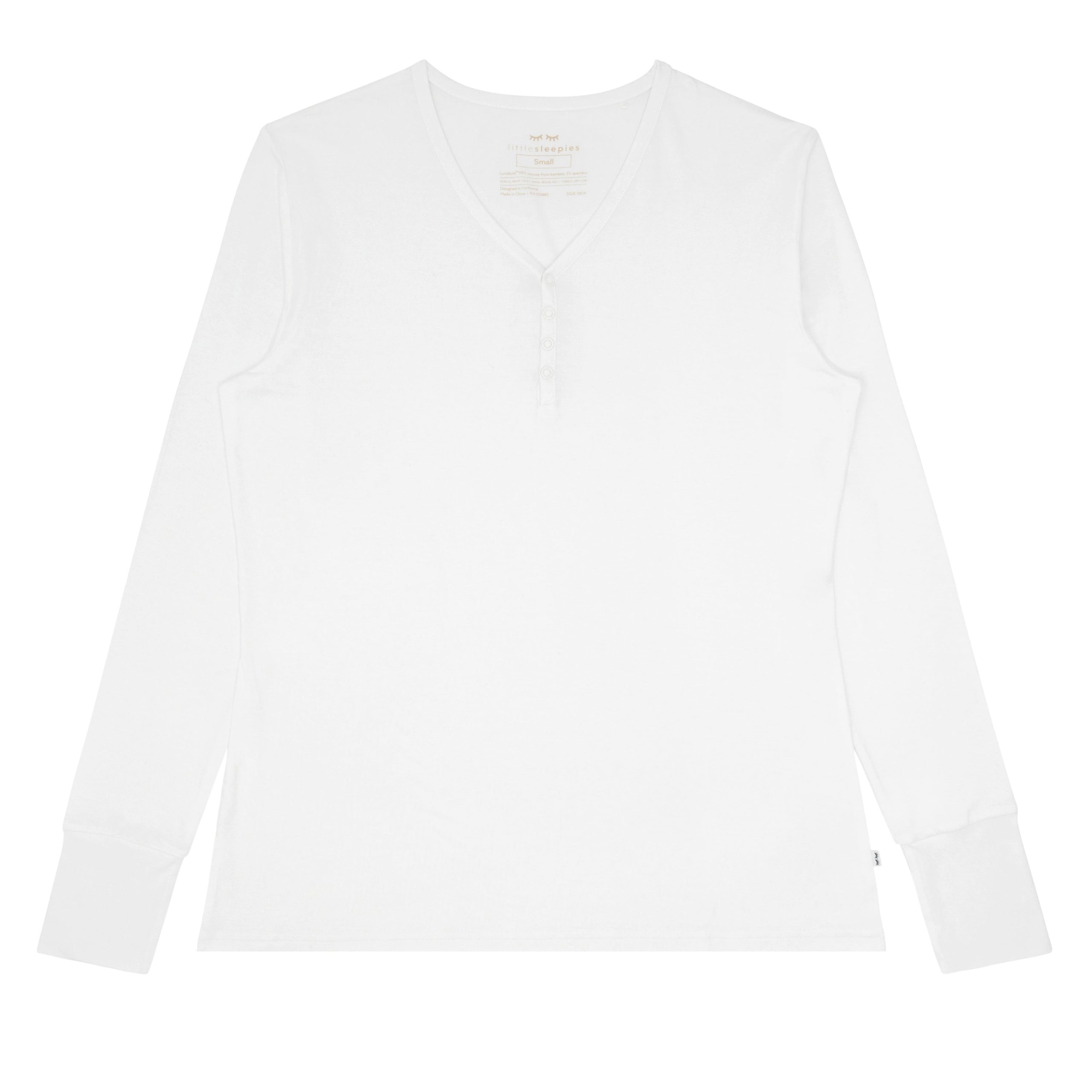 The comfiest classic White PJ Top! Crafted from our buttery soft and stretchy Lunaluxe? Bamboo. with a relaxed v-neck that makes it as comfy as it is cute. It also features snaps at the neckline for easy nursing access. Pair it with Little Sleepies PJ pants. or swap in your favorite jeans!