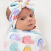 Special delivery! The Candy Cuties Swaddle & Luxe Bow Headband Set features conversation hearts in watercolor rainbow hues on stretchy Lunaluxe® Bamboo that’s gentle on newborn skin. The versatile swaddle and adjustable bow headband that never needs tying make the perfect pair. Packaged in our signature peekaboo gift box. it’s the sweetest gift!