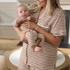 Midnight feeds never looked so sweet! This must-have Chestnut Brown Stripe Pajama Set features a button-down top for easy nursing and comfy shorts with a bump-friendly waistband. Made from our signature bamboo fabric. with side pockets to keep essentials close. With its soft. tagless design. this dreamy set makes those early sleepless nights feel a little more luxe. Perfect for matching with baby!