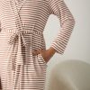 A must-have for mama! This silky soft bamboo Chestnut Brown Stripe Robe features a relaxed silhouette with a removable belt and inner tie closure for the perfect fit. The stripes add timeless charm. while two side pockets keep your essentials close. With its tagless design. this dreamy robe is perfect for hospital homecomings. slow Sunday mornings. and matching with your littlest love.