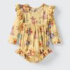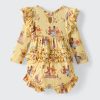 Little sweetie. big adventures! The Disney Playtime With Pooh Bubble Romper features all their fave friends on an updated shade of butter yellow. Made from soft. durable Soluxe? Bamboo. this baby romper has a snappable bottom for easy changes and the cutest ruffle details. Perfect for family outings and sibling matching!