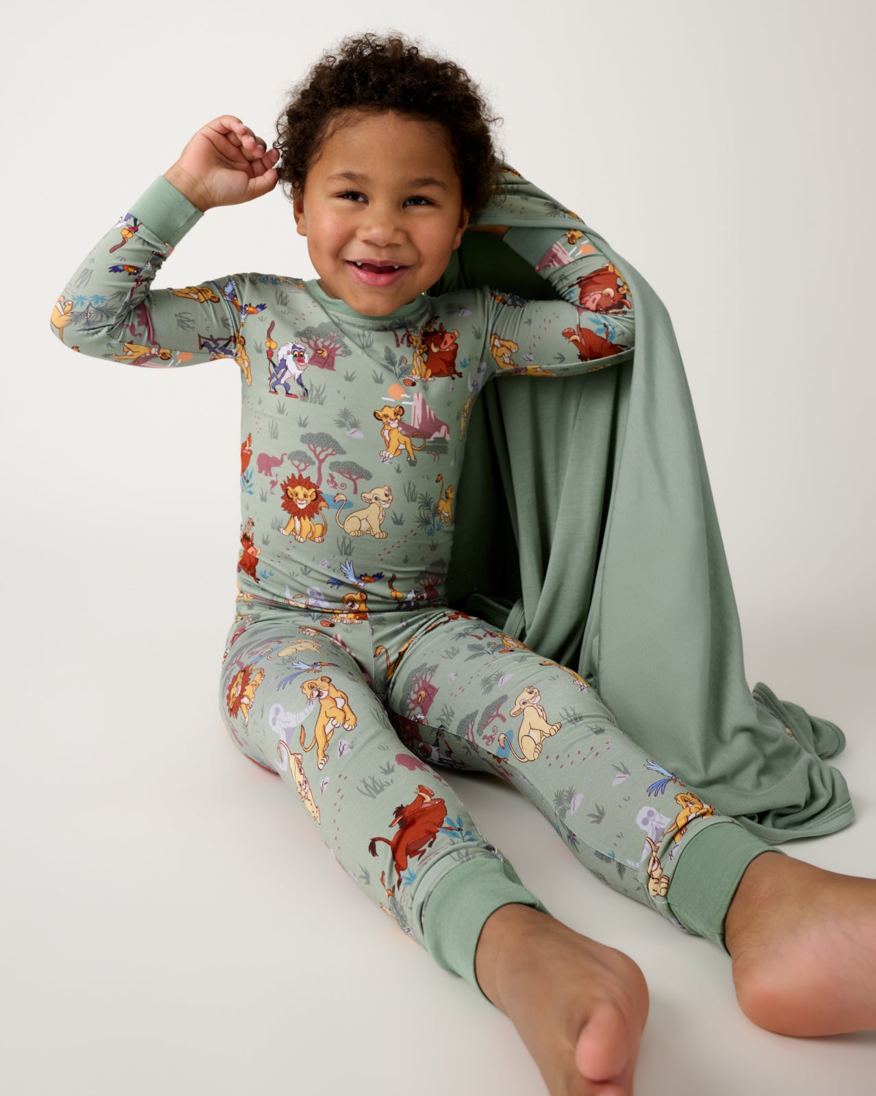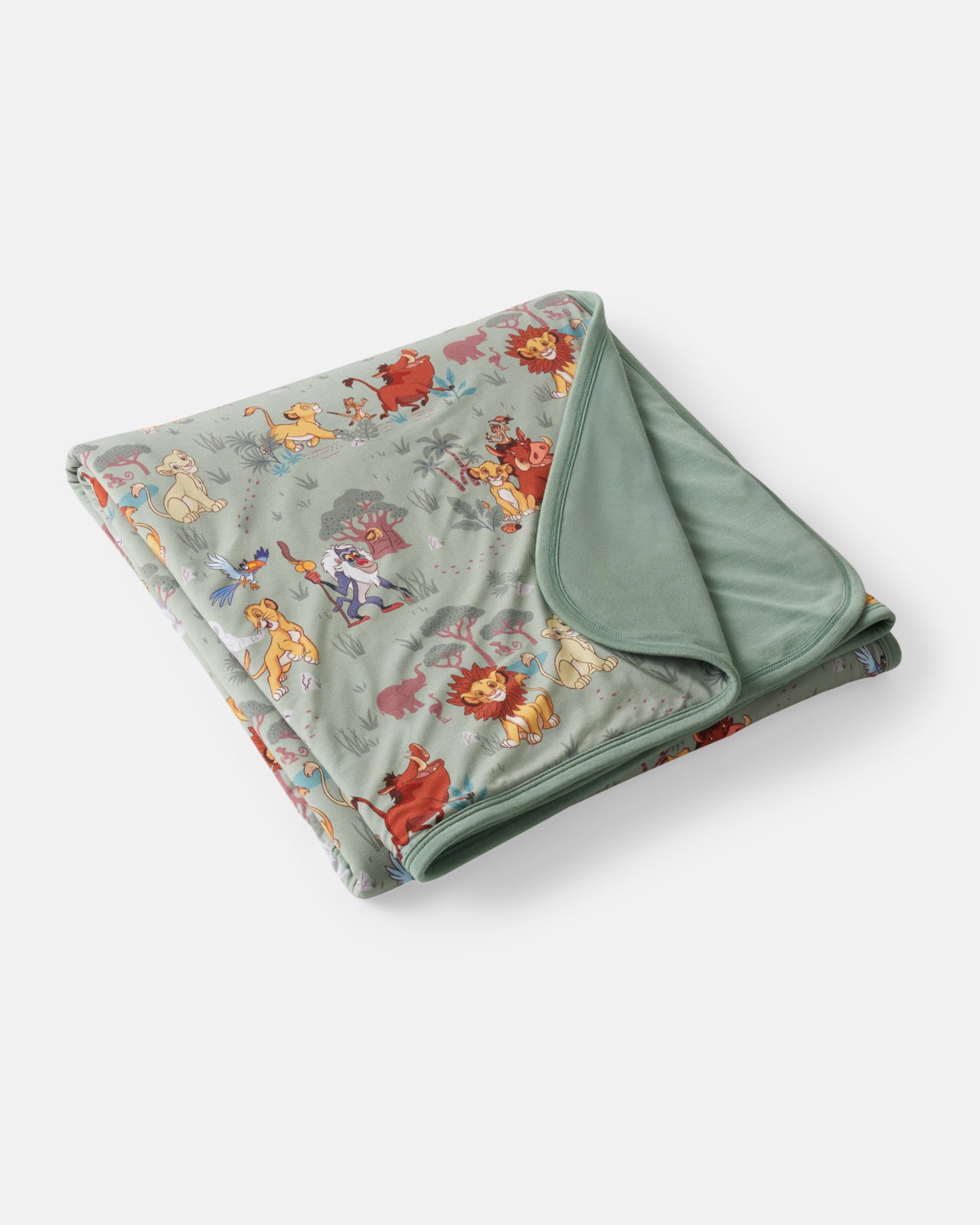 Snuggle up for movie nights under this Disney Simba’s Safari Cloud Blanket®! Made from three luxurious layers of ultra-soft Lunaluxe® Bamboo. this Disney’s The Lion King bamboo blanket features Disney’s Simba and friends exploring the land in a sage green colorway. Generously sized for the whole pride to cuddle up together. Don’t forget the matching PJs!