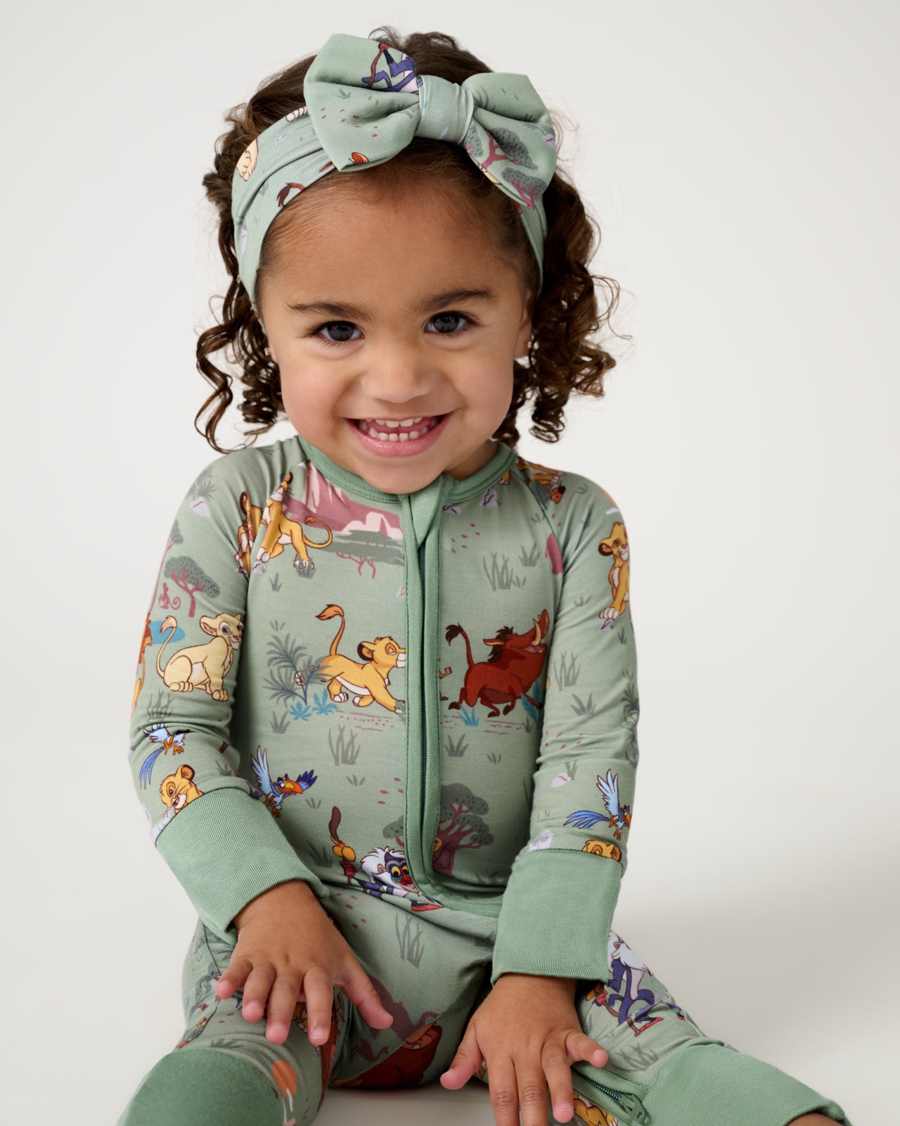 The cutest topper for your little cub! This Disney’s The Lion King Simba’s Safari Luxe Bow Headband features Disney’s Simba and friends exploring the land in a sage green colorway. Made from ultra-soft Lunaluxe? Bamboo that’s gentle on sensitive skin. this Disney’s The Lion King sweet bow headband has real loops and never needs tying. Perfect for mix & matching with their fave LS styles!