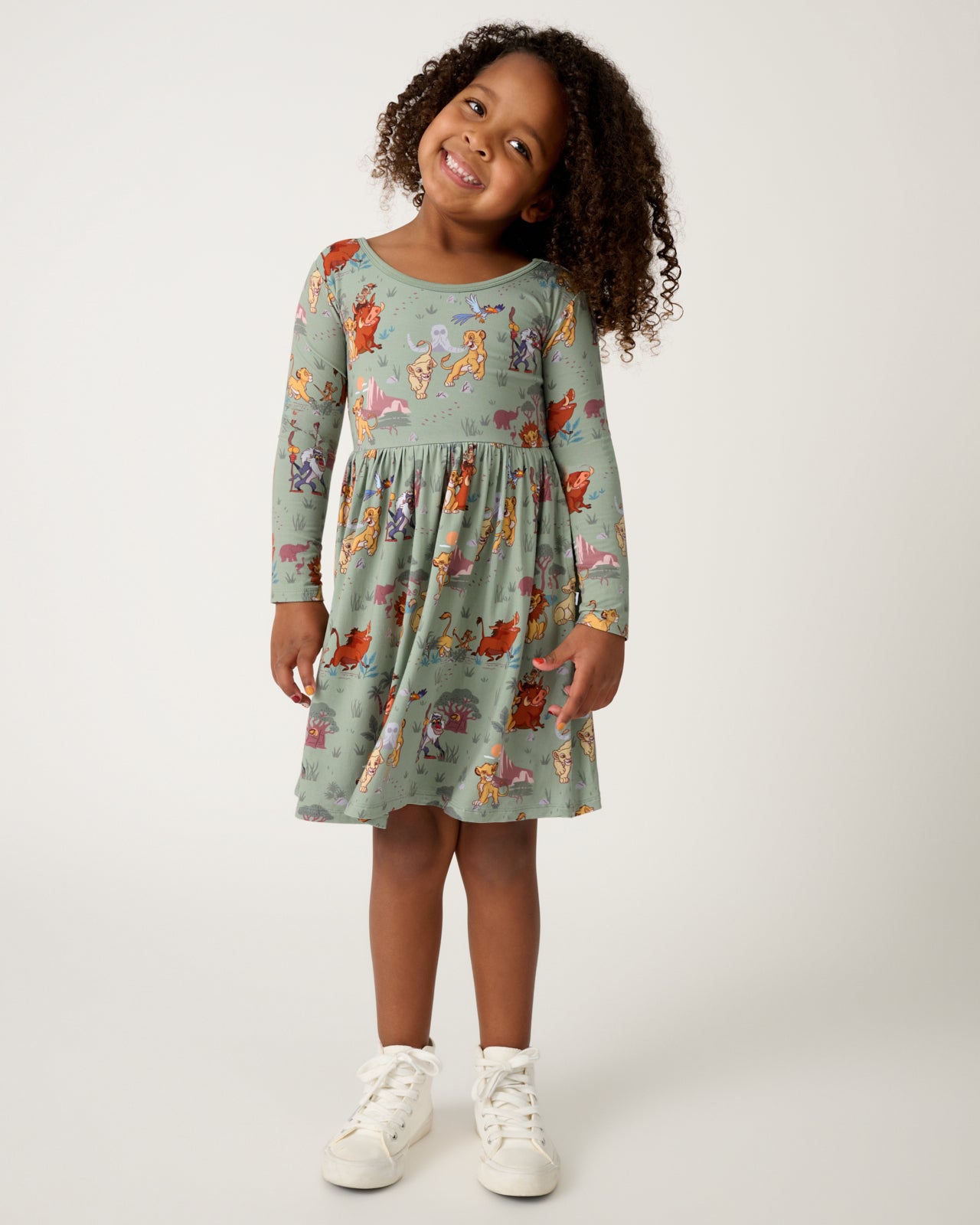 For your little cub. This Disney Simba’s Safari Skater Dress features Disney’s Simba and friends exploring the land in a sage green colorway. Made from durable Soluxe? Bamboo with two side pockets for storing treasures. this Disney’s The Lion King girls dress is as cute on its own as it is layered over leggings. Perfect for playground adventures and sibling matching!