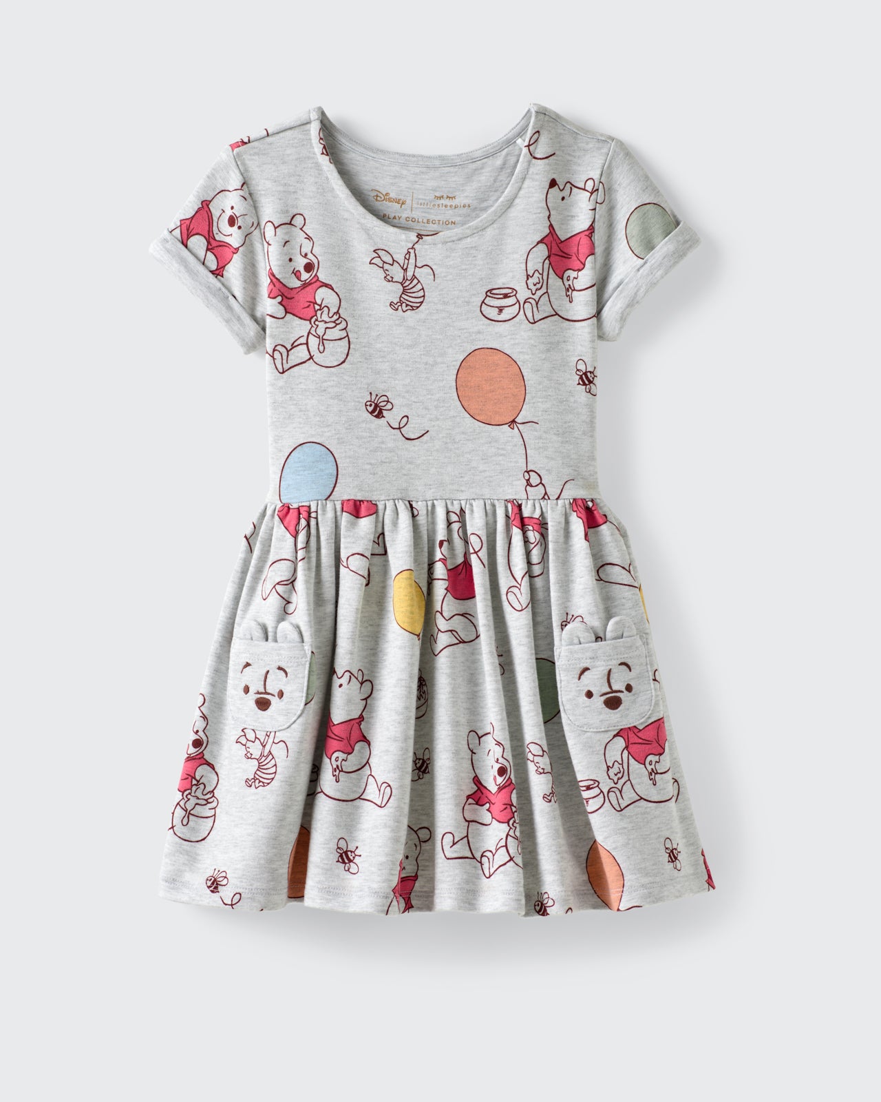 Sweet as honey! This adorable girls dress features all her favorite Disney Winnie the Pooh friends on soft and durable Soluxe® Bamboo. Two cute pockets are perfect for holding treasures. with a relaxed fit that’s playtime-ready. Layer it over leggings for a little extra warmth!