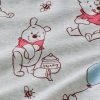 Up. Up And Away is light heather gray with black outlines of Disney’s Winnie the Pooh. His shirt is red and he is surrounded by bees and orange. yellow. green. and blue balloons.