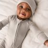 Welcome littles to a world of cozy. Made from buttery soft Lunaluxe® Bamboo. the Dove Gray Zippy is oh-so gentle on baby’s delicate skin. It boasts mama-designed details you’ll love. like fold-over mittens to protect tiny cheeks. convertible feet that adapt as they grow. and a double zipper to make middle-of-the-night changes a little easier. Comes in a bamboo keepsake bag that can double as a gift bag. Snag the matching Bear Booties and Bonnet for precious photo-ops!