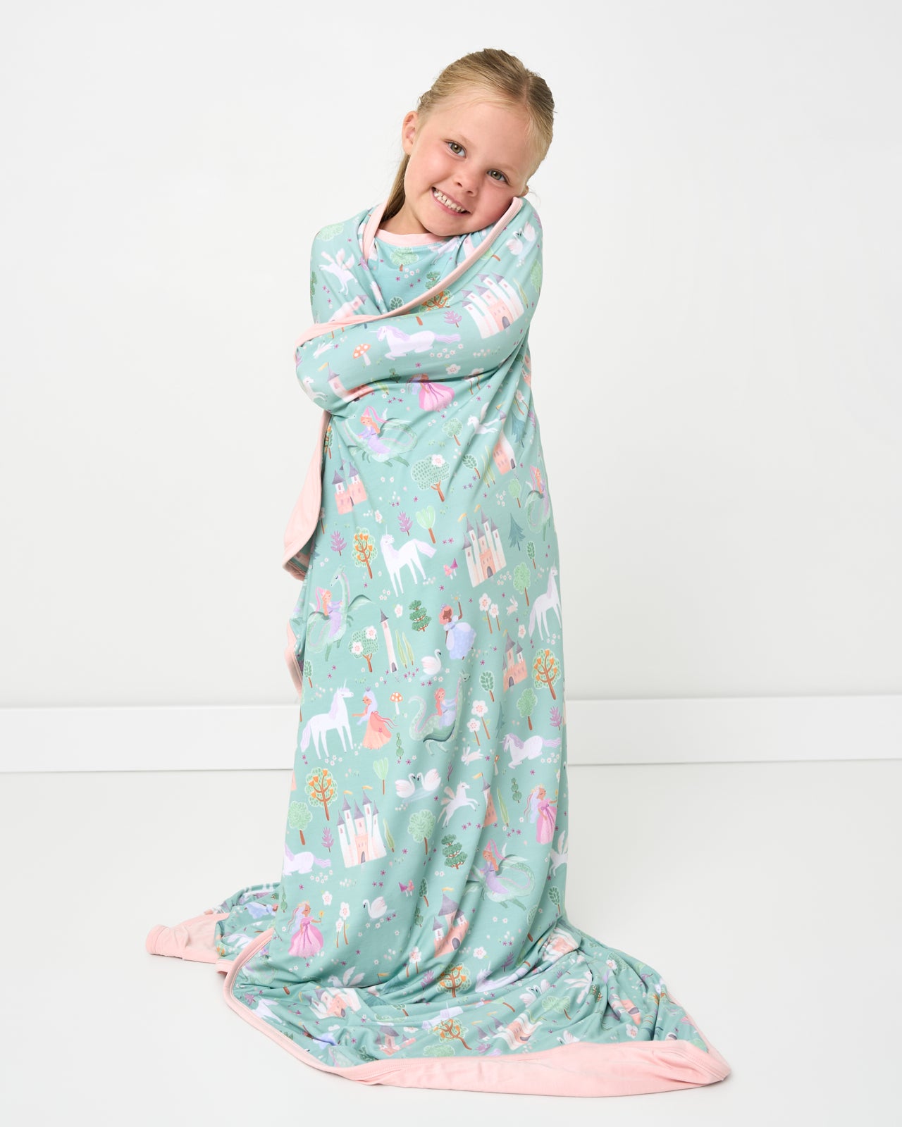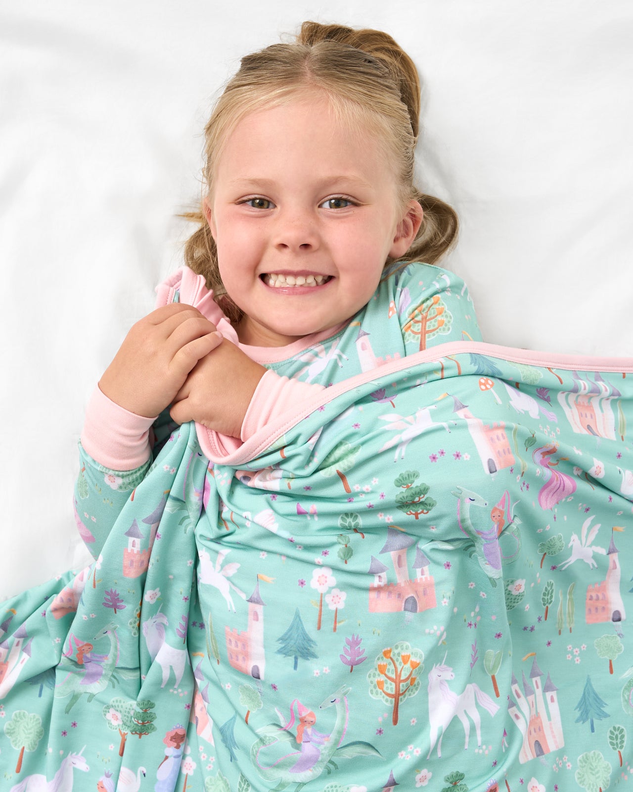Once upon a time. there was the perfect blanket for every little princess! The Enchanted Fairytale Large Cloud Blanket? features whimsical unicorns. princesses. and pink castles your kiddo will love. Made from triple-layered Lunaluxe? Bamboo that’s gentle on sensitive skin. this bamboo blanket makes storytime even more magical. Don’t forget to grab the matching Zippy!
