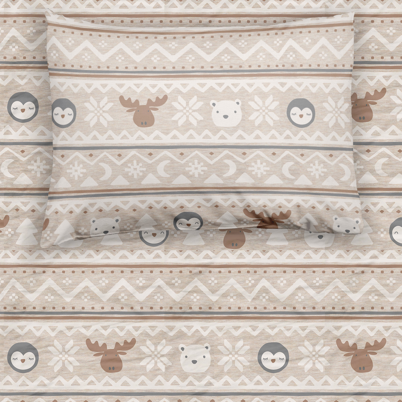 Tuck them in for dreams of a winter wonderland! The Frosty Fair Isle Twin Sheet Set features moose. polar bears. and sleepy-eyed penguins in neutral tones on buttery soft Lunaluxe? Bamboo. This twin sheet set includes a fitted sheet and pillowcase with envelope closure. all in a matching reusable pouch. Perfect for pairing with their PJs!