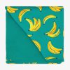 The Go Bananas print features yellow bananas scattered across a teal green print. The trim and backing are matching teal green.