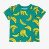 The Go Bananas print features yellow bananas scattered across a teal green print.
