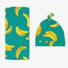 The Go Bananas print features yellow bananas scattered across a teal green print.