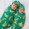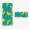 The Go Bananas print features yellow bananas scattered across a teal green print.
