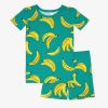 Let’s have a bunch of fun! The Go Bananas Two-Piece Pajama Set features bright bananas on our signature Lunaluxe® Bamboo. With a matching short sleeve top and pull-on bottoms (for easy potty training!). this bedtime duo is soft and stretchy with no snaps. buttons or tags. Just bedtime bliss with a tropical twist!
