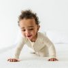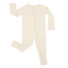 A neutral hue that’s a must-have in your PJ rotation! Made from our signature Lunaluxe® Bamboo. this Heather Oatmeal one piece zipper pajama features a ribbed texture that’s oh-so cozy. It boasts thoughtful features like fold-over feet & mittens. a 2-way zipper and no scratchy tags. Don’t forget a matching Luxe Bow!