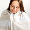 Dreams do come true! As perfect for couch snuggles as it is in the bedroom. Made from buttery soft Lunaluxe? Bamboo. this cozy Oversized Cloud Blanket? features cream and Heather Oatmeal stripes on one side. with solid Heather Oatmeal on the other.