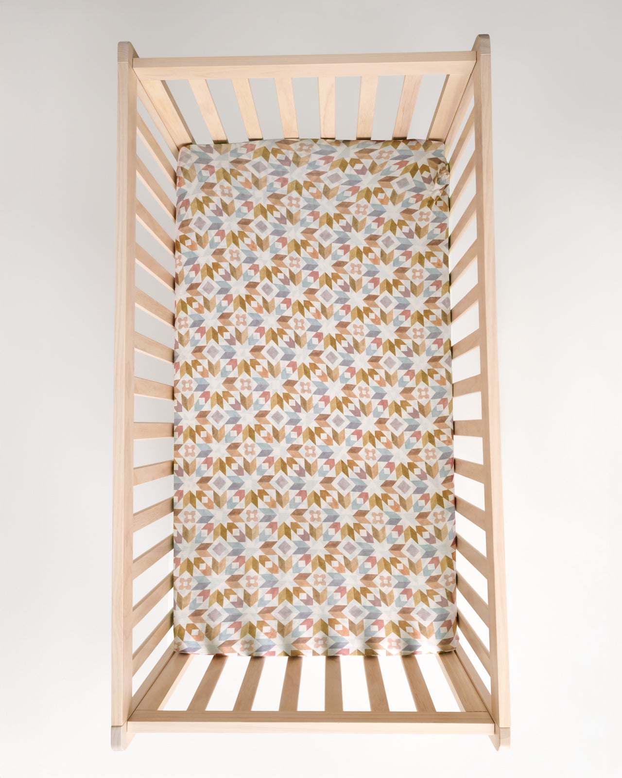 Dream in color. The Kaleidoscope Dreams Fitted Crib Sheet features an earthy prismatic pattern. Made from soft Lunaluxe® Bamboo that’s gentle on sensitive skin. this bamboo crib sheet is fully elasticized for a safe and secure fit. Grab the matching Zippy for the sweetest photo-ops!