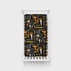 The Little Builders print is filled with colorful tools ?? such as drills. pliers. wrenches. and more ?? neatly arranged across a black background.