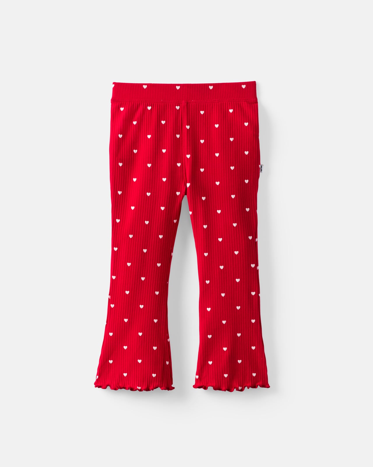 The softest kind of love! The Little Love Ribbed Flare Pant features white micro hearts on cozy brushed ribbed Soluxe® Bamboo. These girls leggings have a flared fit with sweet lettuce-edge hems and an easy pull-on style. Pair with the Little Love Ribbed Flutter Crewneck for the cutest matching set!