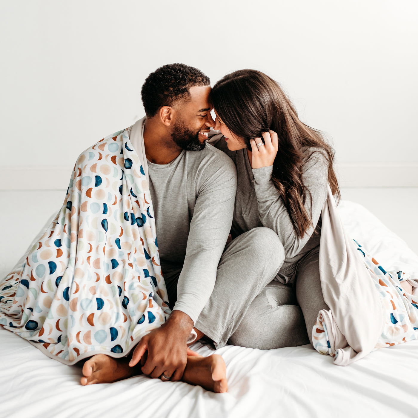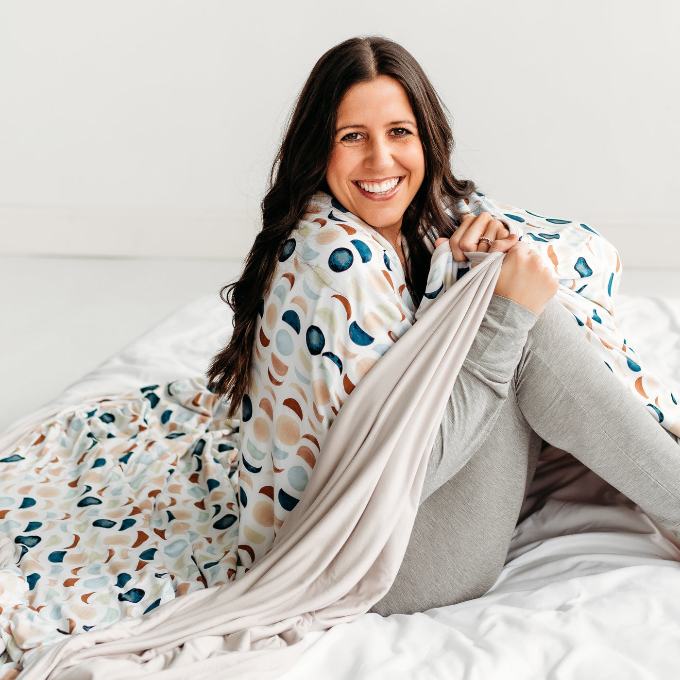 Cuddle up with the kiddos under this Oversized Cloud Blanket?. Featuring neutral watercolor phases of the moon. this triple-layered blanket is crafted from our buttery soft Lunaluxe? Bamboo. With a coordinating solid back. it’s perfect for snuggles with the whole fam!