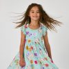 Twirl into lunchtime! This girls’ dress features the sweetest spreads and breads. with special details she’ll love. Made from super soft and durable Soluxe® Bamboo. it’s got flutter sleeves. a full twirl skirt. and two side pockets for storing snacks. Perfect for playground adventures and matching moments with best buds!