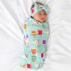 Welcome your little buddy in super-soft style! Spread the newborn love with our Lunch Buddies Swaddle & Luxe Bow Headband Set. featuring the sweetest lunchbox crew around. Made from stretchy Lunaluxe® Bamboo that’s gentle on sensitive skin. this versatile swaddle with a matching adjustable bow is perfect for sweet photo ops or baby shower gifting.