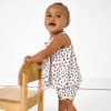 Spotted: the perfect outfit for your little cub! The Luxe Leopard Smocked Top with Bloomers is made from soft and durable ribbed Soluxe® Bamboo. With smocked detailing on the tank and ruffle-trimmed bloomers. its relaxed fit is just right for crawling and looking cute!