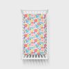 Midsummer Meadow is white and filled with an assortment of flowers in shades of pink. yellow. and blue.