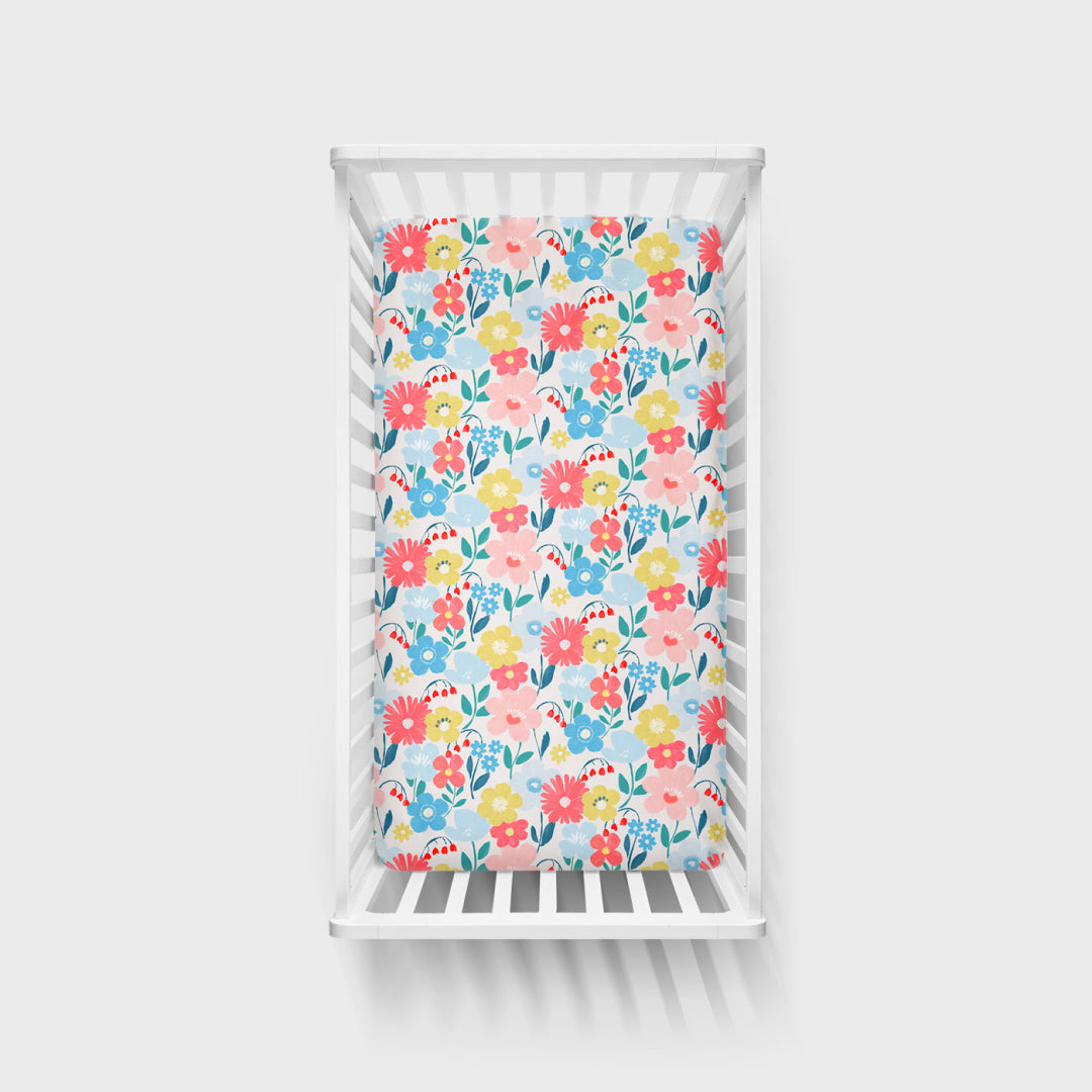 Bright blooms. big dreams. The Midsummer Meadow Fitted Crib Sheet features the prettiest Scandi-inspired floral on buttery soft Lunaluxe® Bamboo. These bamboo crib sheets have a fully elasticized fit for safety and security. plus a matching pouch. Grab a matching Zippy for cute camo moments!
