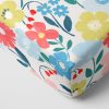 Midsummer Meadow is white and filled with an assortment of flowers in shades of pink. yellow. and blue.