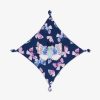 Mira the Butterfly Sleepyhead Lovey features a blue and purple jewel toned plush top in the shape of a butterfly. The attached security blanket is navy blue with butterflies in purple and blue jewel tones.