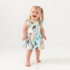 Let their imagination set sail in the Mystic Mermaids Flutter Twirl Dress! Made from soft. breathable Soluxe® Bamboo. this dreamy dress with an attached bodysuit features mermaids and marine friends swimming through pastel waves. With flutter sleeves. a twirly skirt. and built-in diaper coverage. it’s perfect for ocean adventures or dance-floor dreams!