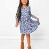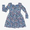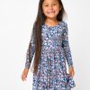 Petal-powered adventures! The Petite Petals Bow Back Skater Dress features delicate ditsy florals in soft shades on a dreamy blue-gray backdrop. Made from durable Soluxe® Bamboo. this girls dress has two side pockets for storing flowers and an adorable bow detail. Perfect for autumn outings and sibling matching!