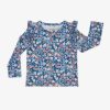 Make room for autumn blooms! The Petite Petals Flutter Tee features tiny florals in soft shades on a dreamy blue-gray backdrop. Made from durable Soluxe? Bamboo. this girls t shirt has sweet flutter sleeves and a relaxed fit perfect for autumn adventures. Mix & match with their fave LS bottoms!