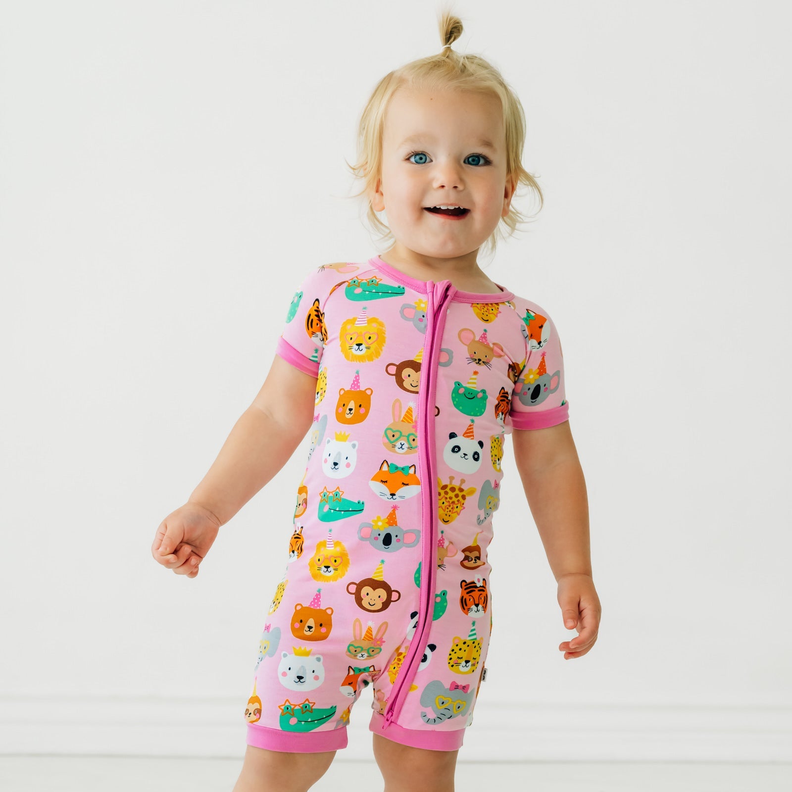 Let’s celebrate! This one-piece zipper pajama features giraffes. monkeys. elephants & more cute creatures that bring the birthday vibes on a pretty pink background. Made from our signature Lunaluxe® Bamboo. with thoughtful features like a double-zipper that extends down the leg & no scratchy tags. Just the perfect birthday outfit ??or birthday gift!