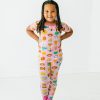 Best birthday PJs ever! Featuring giraffes. monkeys. elephants & more cute creatures celebrating on a pretty pink background. these PJs are made from buttery soft and stretchy Lunaluxe® Bamboo. The short sleeves are perfect for warmer weather. while the comfy pants are designed with extra length to fit up-to-3x longer. Snag styles for the whole fam!