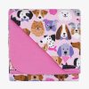 Puppy Parade features an eclectic mix of beloved dog faces ??including golden retrievers. corgis. poodles. dachshunds. and more ??nestled together on a soft pink background. Accessories like bandanas and bows add a charming spin. The trim and backing are a darker shade of pink.