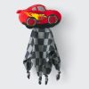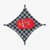 The Pixar’s Lightning McQueen Lovey features a plush top in the shape of Lightning McQueen. The attached security blanket is a dark and light gray checkerboard pattern.