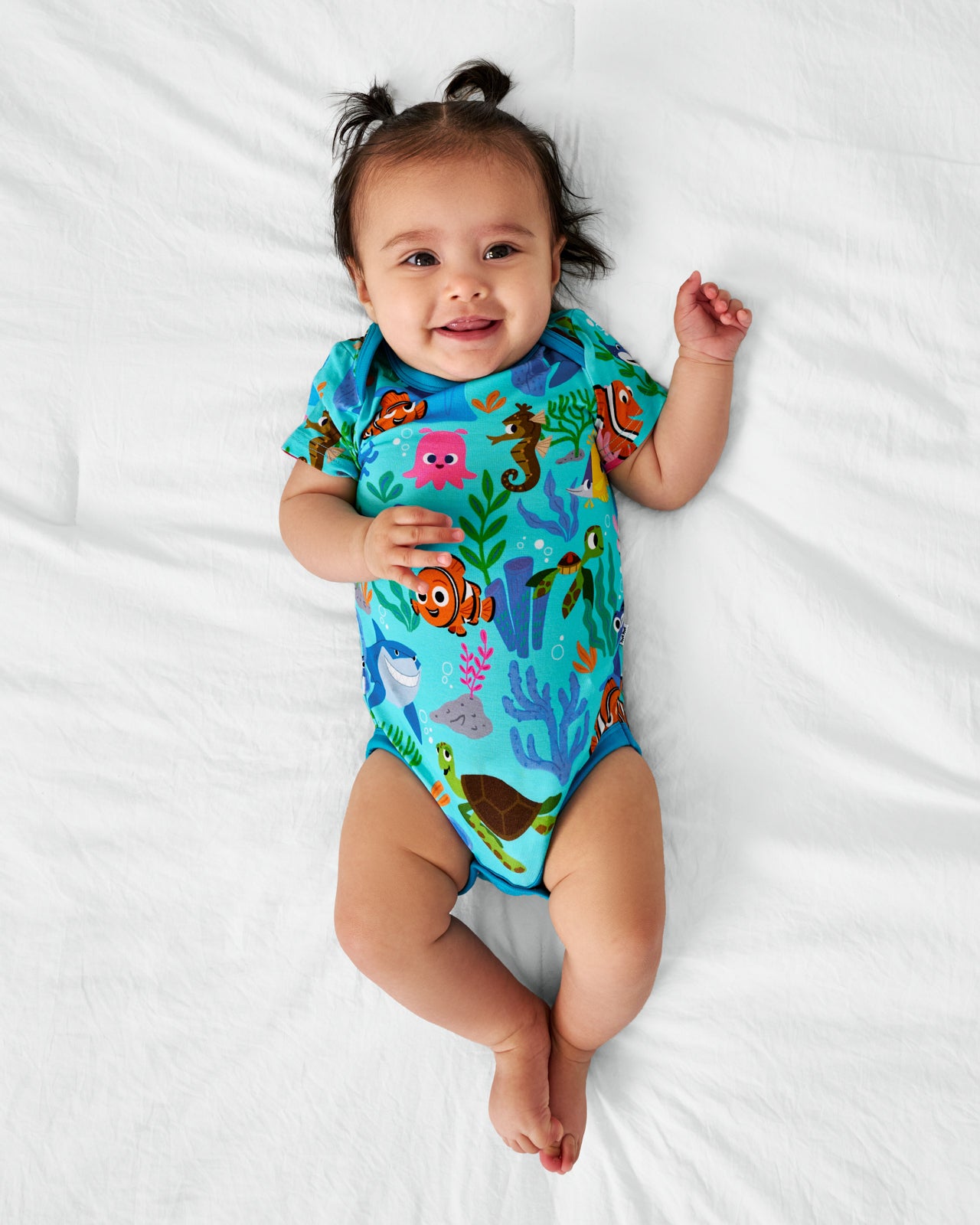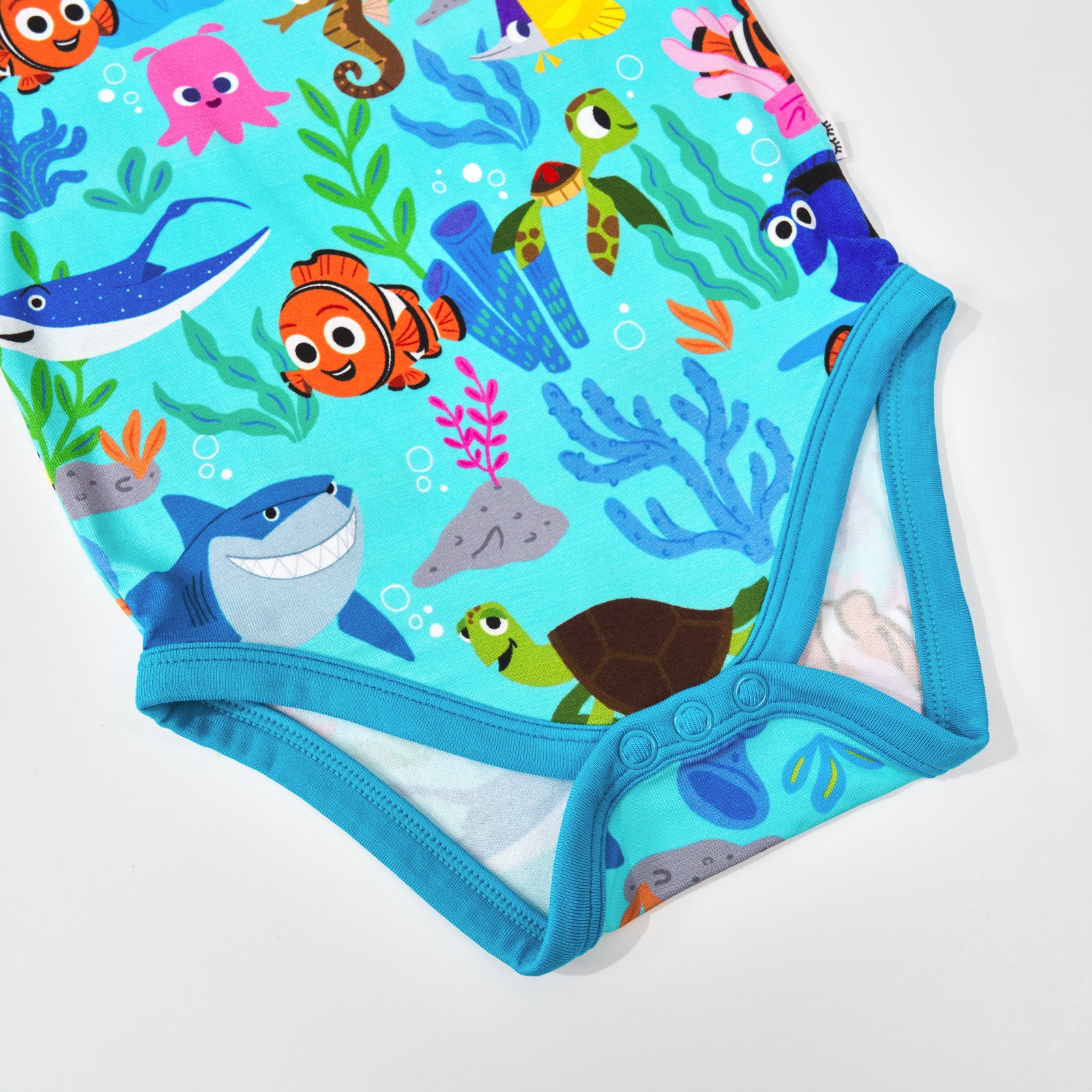 An adorable new one-piece for your little one! The Disney’s Nemo’s Reef Bodysuit features Disney’s Nemo. Dory. and friends in a vibrant underwater scene. made from soft and durable Soluxe® Bamboo. With lap shoulders. a tag-free fit. and built-in snaps for quick diaper swaps. it’s perfect for little explorers on the move. Snuggly soft and gentle on sensitive skin. it’s a must-have for playtime and beyond!