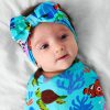 Make a splash with the Disney’s Nemo’s Reef Swaddle & Bow Headband Set! Featuring Disney’s Nemo. Dory. and friends in a vibrant oceanic print. this buttery soft Lunaluxe® Bamboo set is gentle on delicate skin and perfect for year-round snuggles. The generously sized swaddle is a versatile must-have. while the adjustable tie-front headband adds an extra dose of Disney-inspired cuteness. Packaged in our signature peekaboo box ??so ideal for gifting!