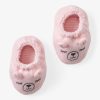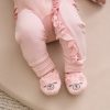 The Prima Pink Bear Booties are pastel pink and feature 3D ears and an embroidered sleepy bear face.