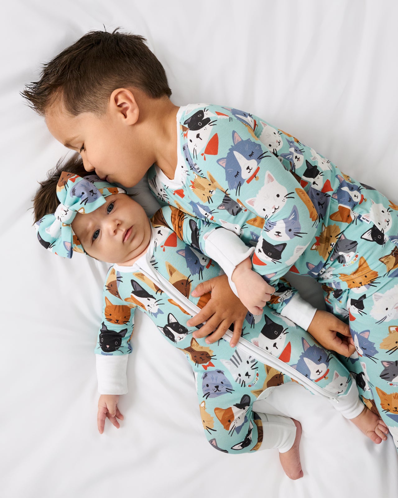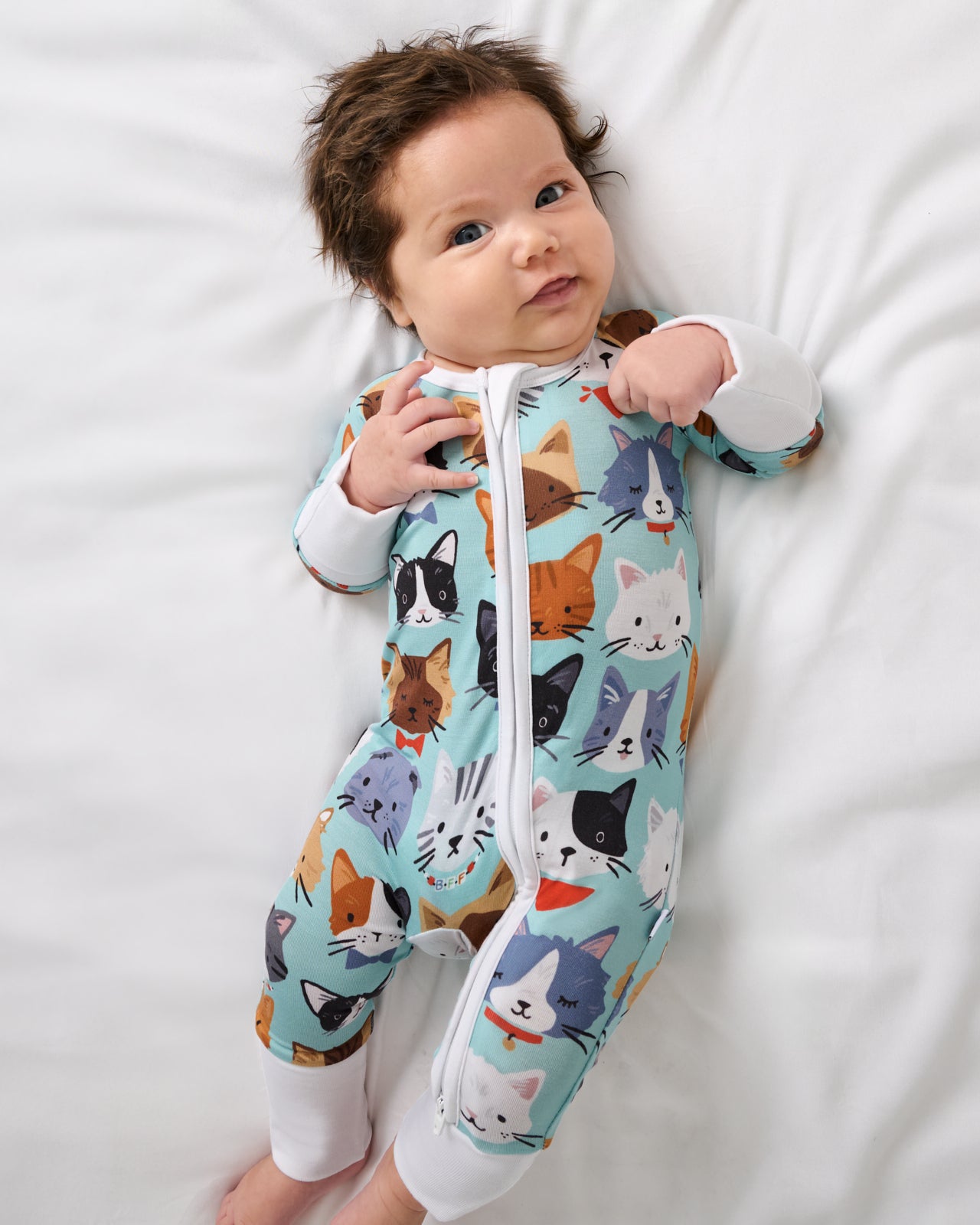 Calling all cat lovers! The Purrfect Pals Zippy shows off a crew of adorable kitties with fun accessories on a light teal backdrop. Made from ultra-soft Lunaluxe? Bamboo. it’s gentle on sensitive skin and great for family matching. Complete with fold-over mittens. foot cuffs. and a double zipper for easy changes. it’s a cute and practical pick for bedtime!