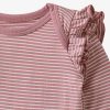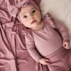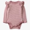 First smiles and coos deserve the sweetest flutter touches! The Rosewood Stripe Flutter Bodysuit is made from durable Soluxe® Bamboo jersey with a snug fit. This adorable newborn bodysuit features lap shoulders for easy dressing and fold-over mittens to protect delicate skin from tiny scratches. The flutter details at shoulders add a photo-worthy spin. while snap closures make diaper changes easy. Comes in a bamboo keepsake bag that can double as a gift bag. Don’t forget a matching Ruffle Bib!