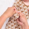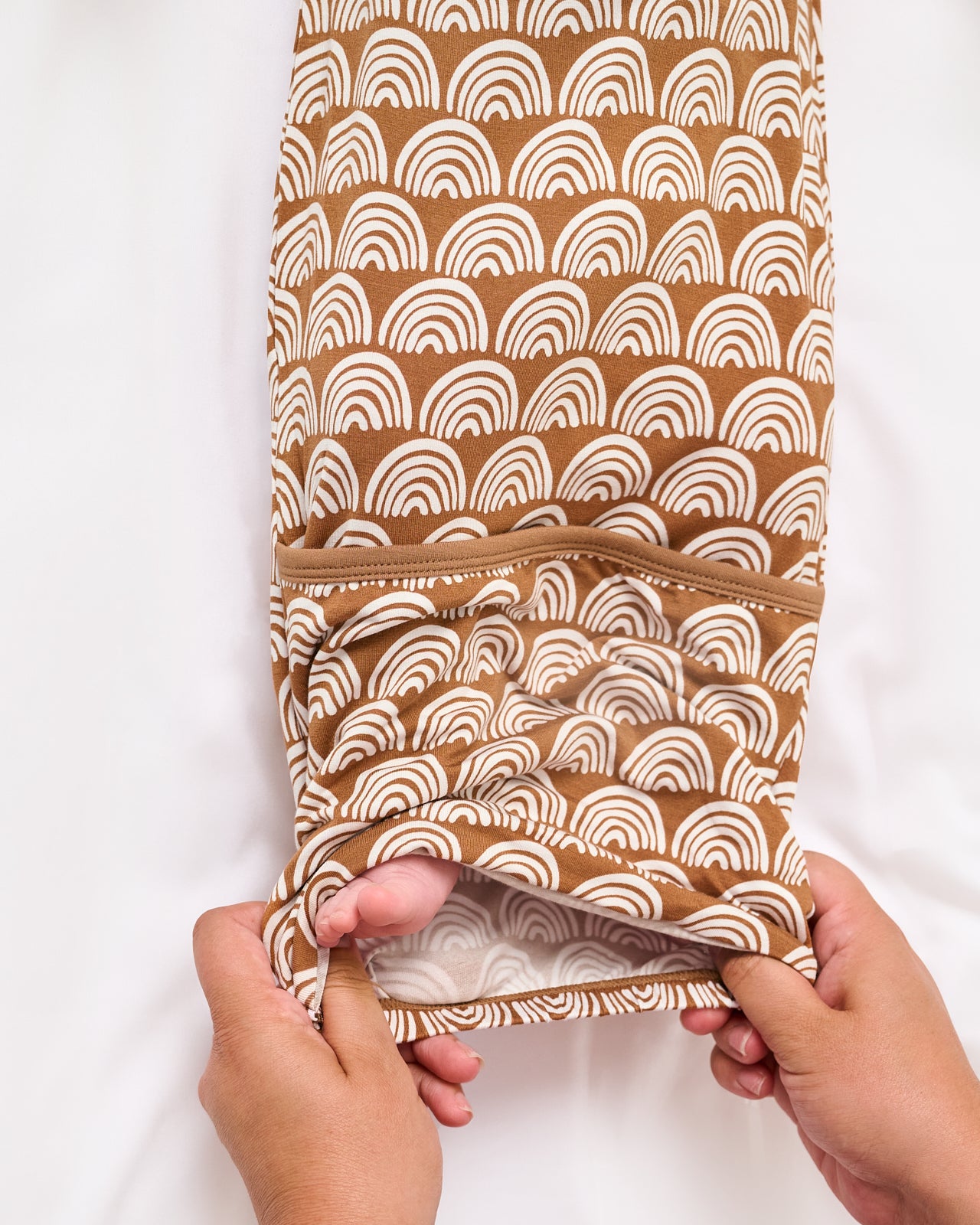 For your little dreamer! Featuring white rainbows on a neutral background. Rust Rainbows is a fan-favorite print. This infant style marries the snugness of a swaddle with the fold-over mittens of our Zippies. It’s made from our buttery soft Lunaluxe? Bamboo. with lap shoulders for easy dressing and an envelope-style bottom to make diaper changes a breeze.
