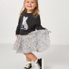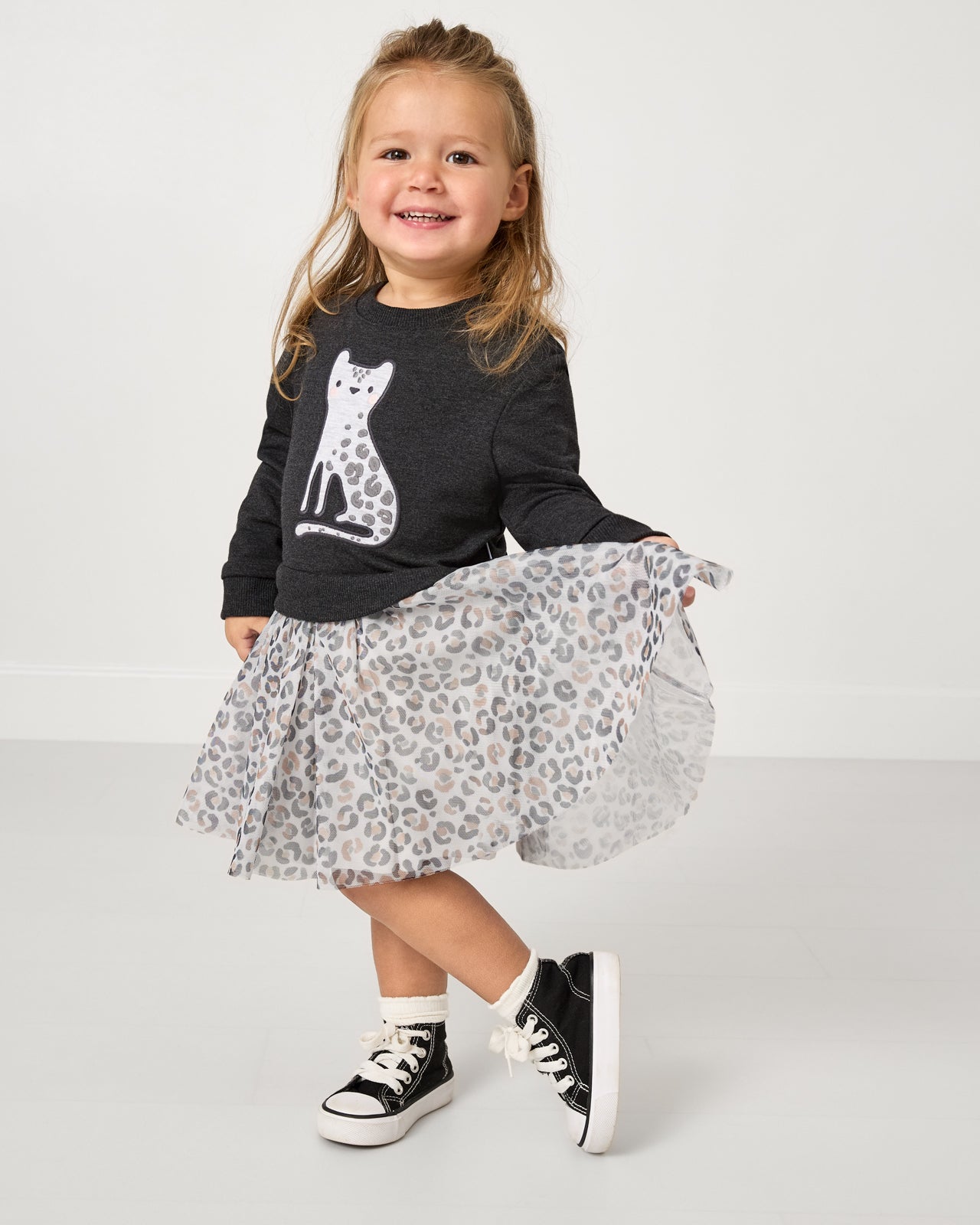 Spotted: their new fave dress. The Snowy Leopard Crewneck Tutu Dress features a leopard appliqué on soft Soluxe® Bamboo with a cozy French terry interior. Plus. it has a two-tiered printed leopard tulle skirt attached! We love it paired with the Snowy Leopard Leggings.