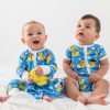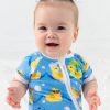 Your little duckling will waddle off to bed in the Splish Splash Shorty Zippy! This bubbly print features cute rubber duckies floating by. with bubbles all around. Made from our signature Lunaluxe® Bamboo. it’s buttery soft. breathable. and gentle on sensitive skin. The double zipper and tagless design make for post-bath bliss!