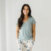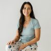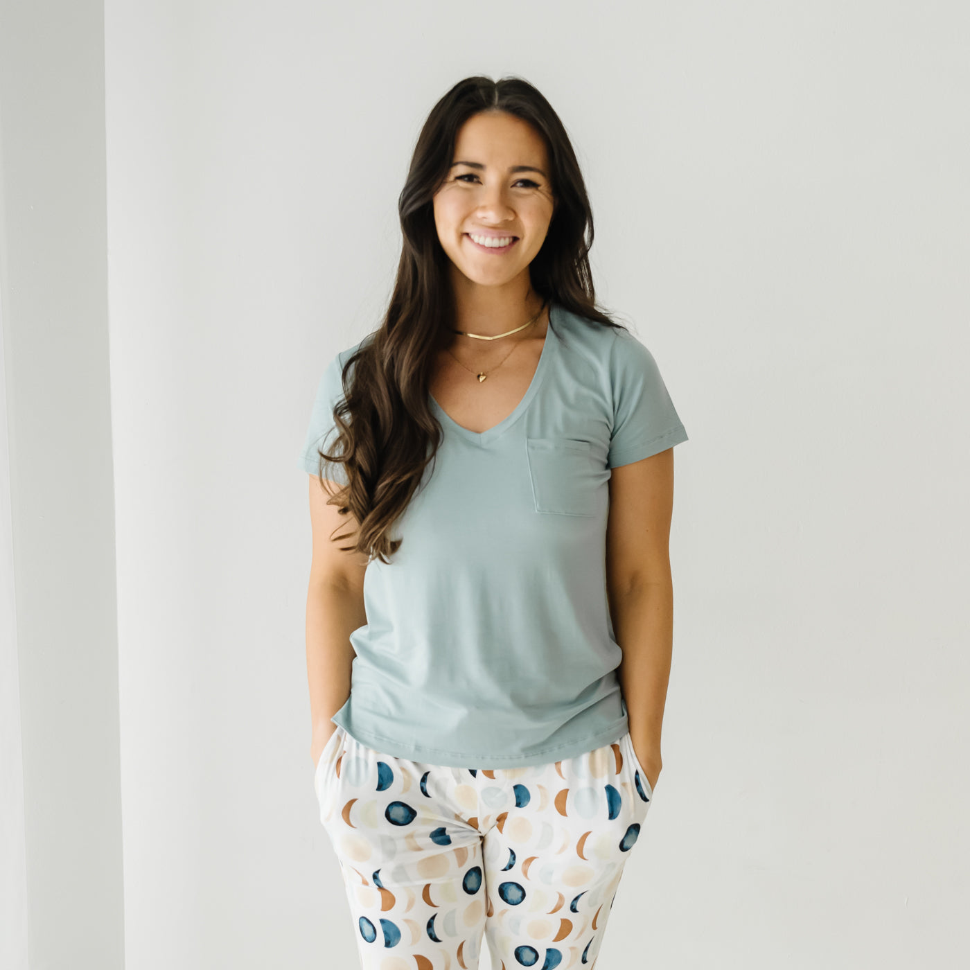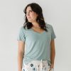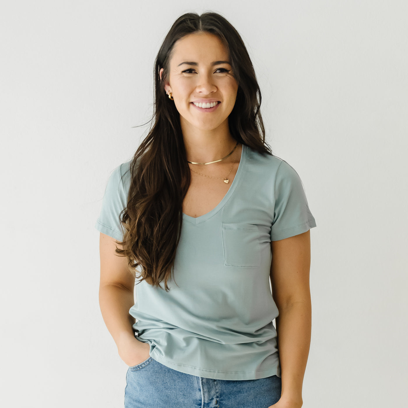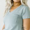 The comfiest tee you’ll ever own! Designed by a mama and made from our buttery soft Lunaluxe® Bamboo in a thicker fabrication. this blue-gray Pocket Tee features a relaxed fit. trendy pocket. and perfect V. It’s super comfy and goes with everything from jeans to PJs. This pocket tee is classic. comfy. and dare we say??erfect.