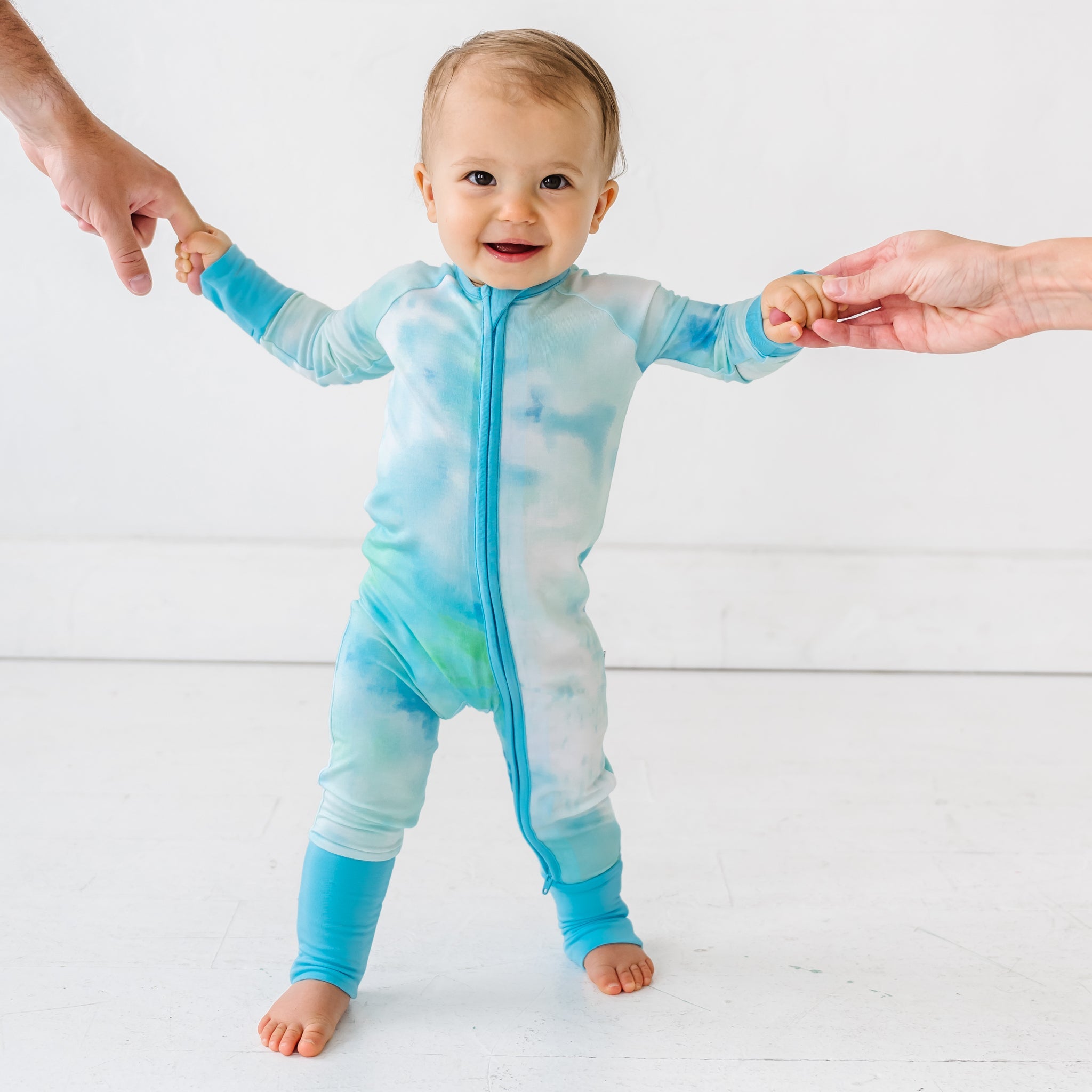 Dive into a sea of sweet dreams with soothing swirls of blue and green. Made from our signature Lunaluxe? Bamboo. this Zippy is designed with thoughtful features like fold-over feet & mittens. a 2-way zipper. and no scratchy tags. Grab styles for full family matching!